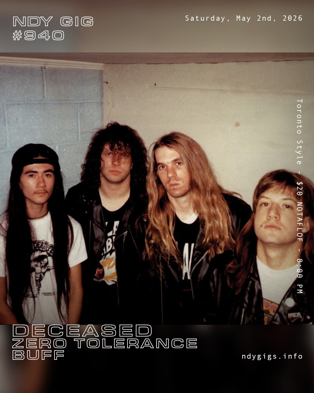 They'll be joined by Hamilton's young thrash masters ZERO TOLERANCE, and the Brampton pit activators in BUFF.