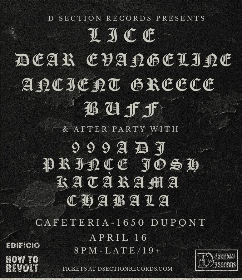 LICE / DEAR EVANGELINE / ANCIENT GREECE / BUFF + DJS